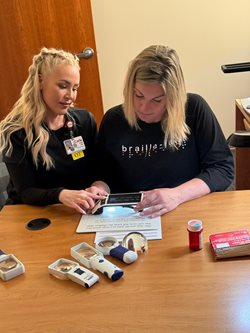 Specialists referred DeBerry to Occupational Therapy at Carle Foundation Hospital (CFH), where she began working with Carle Health Occupational Therapist and Certified Low Vision Therapist Teresa Scott, OTD, CLVT. Together, they explored a range of tools and resources, many of which