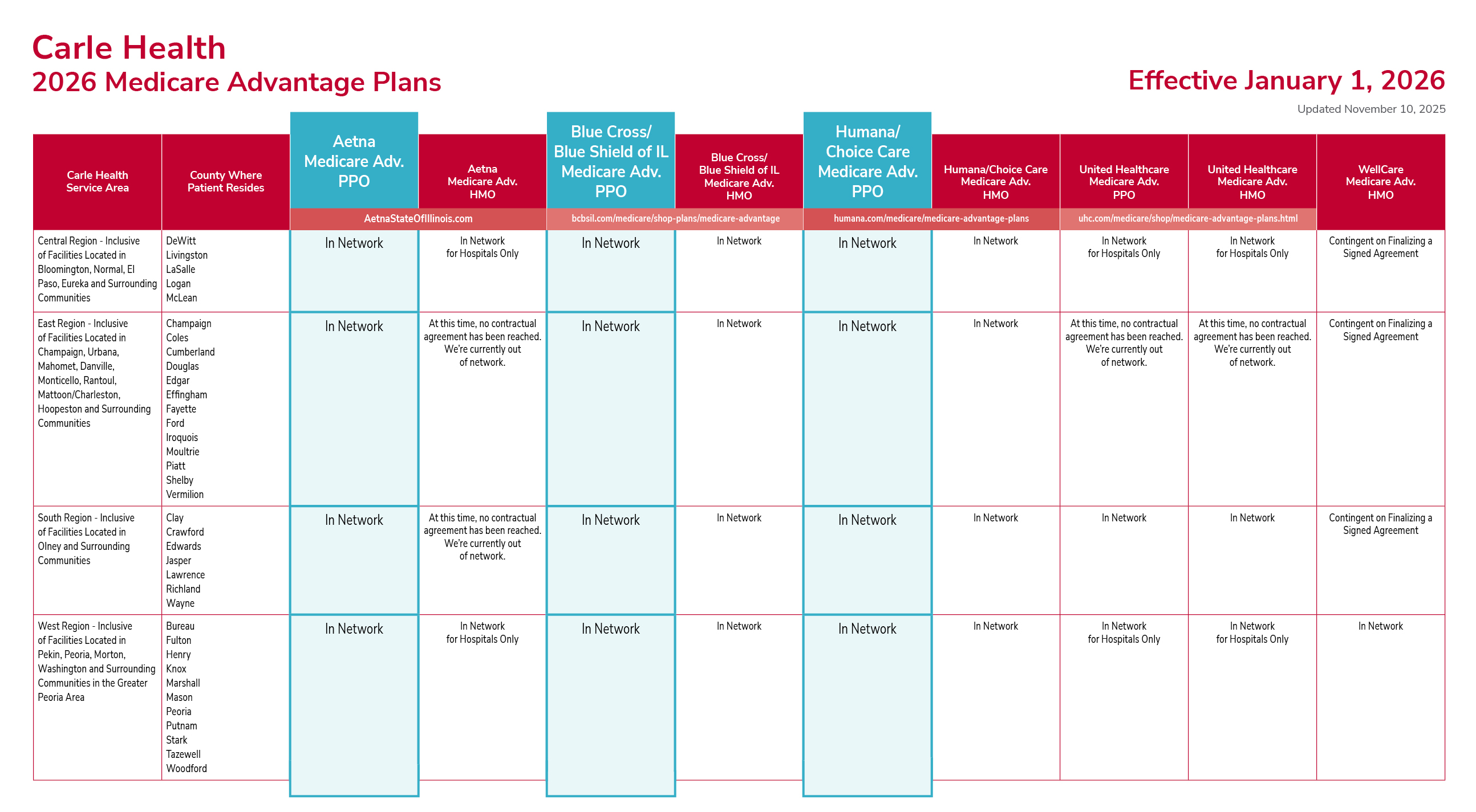 The following resources can help you compare plans and determine which include Carle Health in-network: